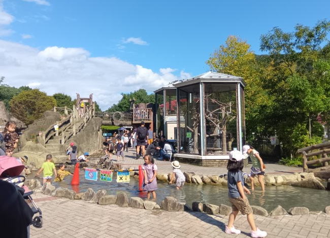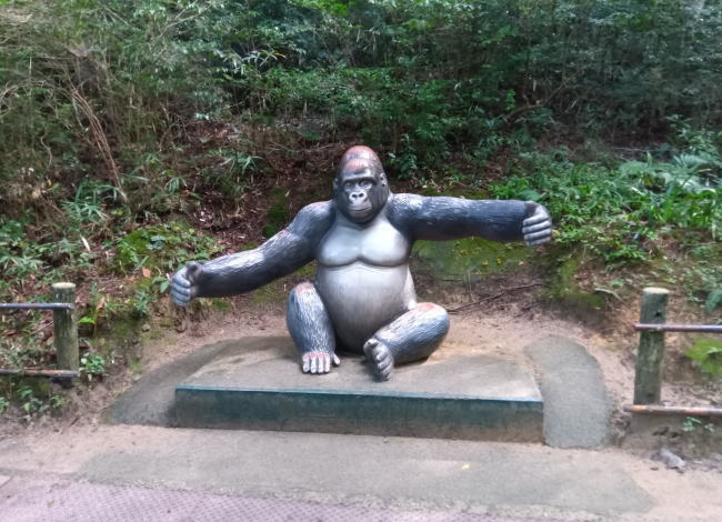 園内にゴリラはいないそうなのですが・・・・・すでに亡くなったニシゴリラの剥製かな? ゴリラとの撮影スポット。園内にはこれらのほかに動物や鳥類、甲殻類、爬虫類なさまざまな野生の生き物が展示されています。ピクニック広場や食堂、軽食喫茶や休憩施設もありゆっくりと観察でき散策も楽しめます (2025年10月5日)