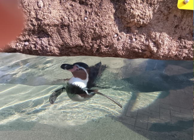 気持ちよさそうに泳いでいるのはフンボルトペンギン。新しく今年の4月に3羽のペンギンが仲間入りしたそうです