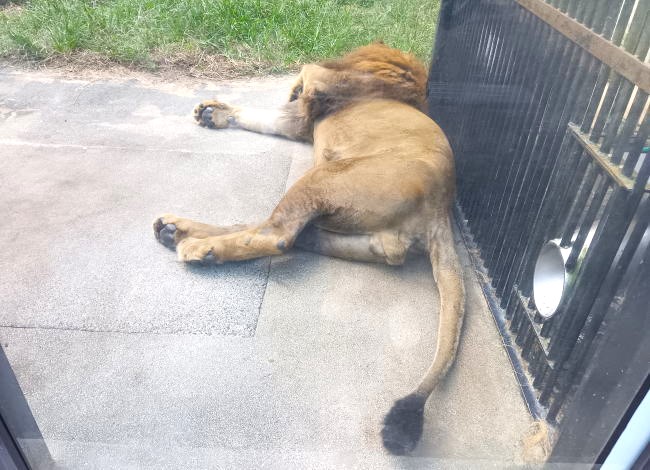 ライオンは現在雄1棟、雌2頭で3頭のライオンが飼育されています。まだ日中は、夏日が続き活動も鈍いようです