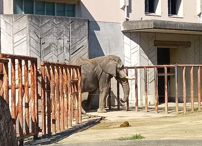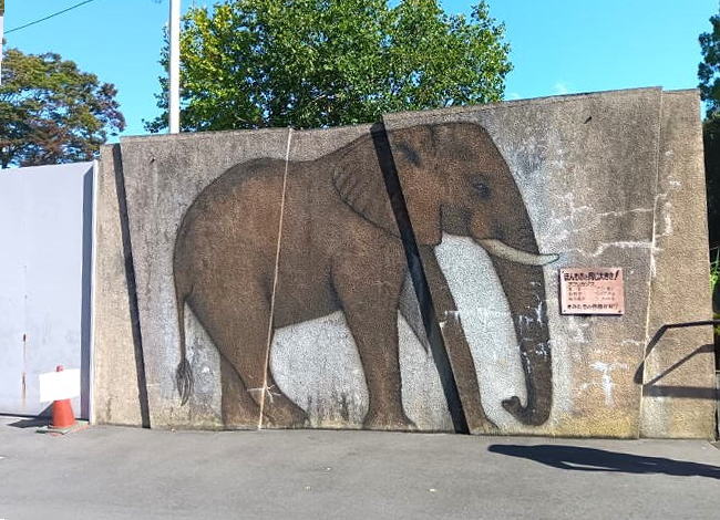 ゾウ舎横の壁には、原寸大のアフリカゾウが描かれています