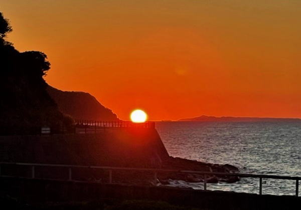 二見ヶ浦は「日本の渚100選」「日本の夕日100選」にも選ばれており、毎年夏至の頃には、2つの岩の中央に夕日が沈む神秘的な光景を見ることができるようです。この時期でも充分鮮やかで美しい夕日を見ることができました (2022年10月20日)