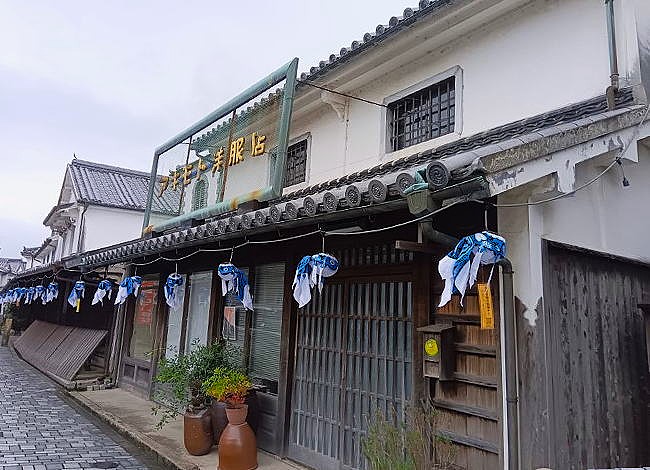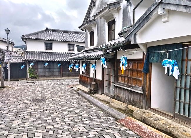 白壁土蔵造りの建物は やない西蔵 。大正末期に建築され、醤油蔵として使用されていましたが現在は金魚ちょうちんや江戸時代から伝わる伝統民芸品、柳井縞の製作体験が出来る工房になっています