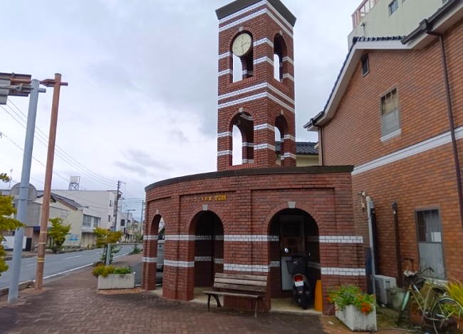 JR柳井駅に通じる麗都路通りには、レンガ造りの塔・ オルゴールの館グリム があります。大型のオルゴールが納めてあり、日本で唯一のオルゴール作曲家橋本勇夫氏の作品を聴くことができるようです (2025年9月23日)