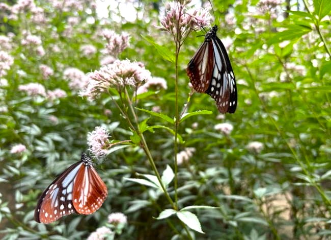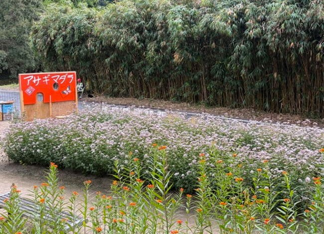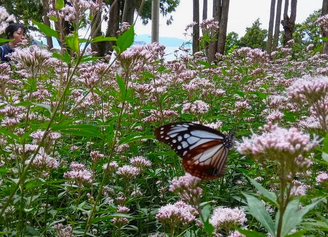 約2,000本のフジバカマが咲く花畑は、「花の咲く夕日の里づくりの会」が管理しているそうです。満開の花畑に白やピンクの花を行き交って舞う姿は、11月上旬ごろまで観察できるそうです