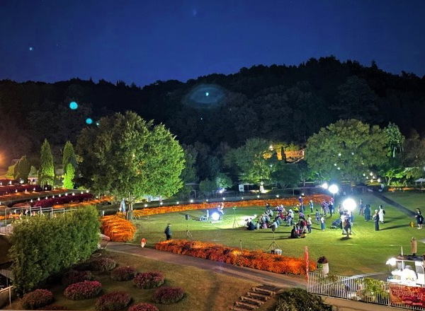園内は21のテーマゾーンに分かれ、年間500品種、約50万本の花が植えられていて、四季折々に季節の花と緑を楽しめる所です。昼間の暖かさとは違い夜はかなり冷えました (2021年10月23日)
