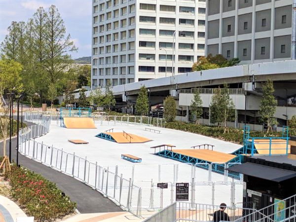 広島市中区の旧市民球場跡地を整備し3月31日にオープンした「ひろしまゲートパーク」。中央にあるイベント広場「ひろしまゲートパークプラザ」を中心に飲食や物販が入る8棟の商業施設「シミントひろしま」があり、スケートボードを楽しめる施設などがあります。かって広島東洋カープの本拠地だった思い出のスポットなどもあります