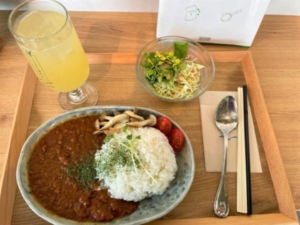 混雑を避けて少し遅い時間にランチをしました。2階にある岡山発のブックカフェ「うのまち珈琲店」でカレーセットをいただく。店内には小説やエッセイ・写真集など幅広いジャンルの本があり、自由に読書を楽しめます。インスタ映えするクリームソーダやデザート風ドリンクが人気だそうです