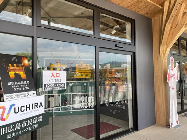 「シミントひろしま」C棟2階のイベントスペースでは「旧広島市民球場 歴史&カープお宝展」が5月7日まで開かれています。広島東洋カープの本拠地だった旧市民球場と往年の名選手の足跡をたどる特別展で、入場は無料です