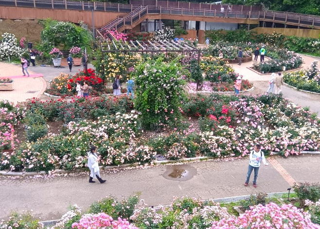 色、種類ごとに植樹されていて深紅のバラは情熱、ピンクのバラは優しさ、白は純粋さ、希望は黄色などとそれぞれの花の色には意味があるそうです