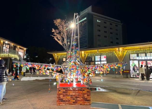 Eピースでは、生演奏に合わせた光の演出でスタジアムを包み込むイベント「光と音楽のスタジアムショー」が14日の6時から無料開放されました。地元音楽家とイルミネーションの共演が楽しめ、一足早くクリスマス気分を堪能しました