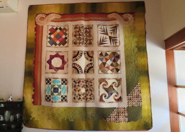 2001年神戸でのパッチワークのコンテスト表彰式で出会ってから今日まで交友関係を続けやっと2人展が実現したそうで、色とりどりの2人の作品約130点が並んでいます