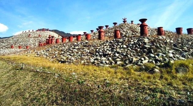 頂上に死者を埋葬する施設があり、ここには二つの2基埋葬施設が造られていたそうです。蓋形埴輪で埋め尽くされています
