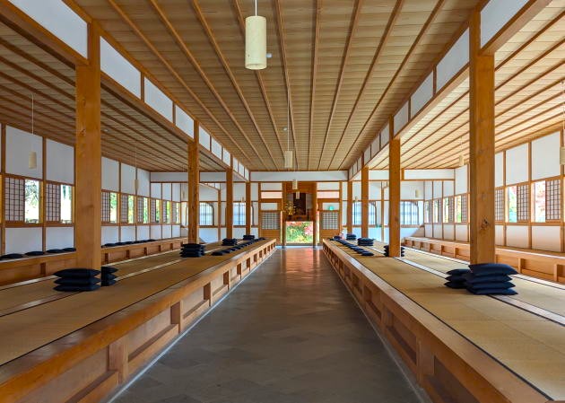 坐禅、写経などの禅体験ができる広々とした禅堂は静寂に包まれています