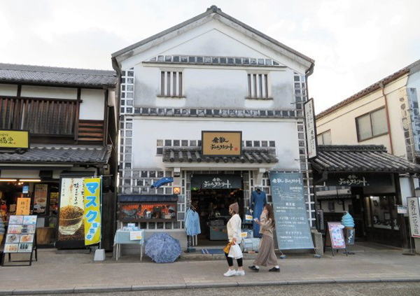 倉敷児島地区は、国産デニム発祥の地で、それにちなんで2014年に美観地区にオープンしました。児島産のデニム製品や、デニム製の小物雑貨や装飾品などを販売。デニム色のソフトクリームやブルー色の豚まんなどのグルメが味わえる美観地区に日が落ち夕暮れ時になると人通りも少なくなり、柳並木の街路樹にほのかな灯りがともり町屋の倉敷格子の窓から灯りがこぼれ始めるころは昼間とは違った倉敷川の情景が見れます。日没後から始まるライトアップの美しさは格別です