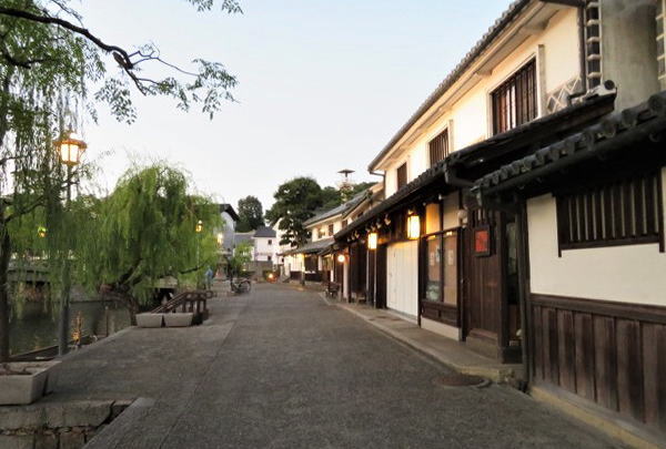 美観地区に日が落ち夕暮れ時になると人通りも少なくなり、柳並木の街路樹にほのかな灯りがともり、町屋の倉敷格子の窓から灯りがこぼれ始めるころは昼間とは違った倉敷川の情景が見れます。日没後から始まるライトアップの美しさは格別です