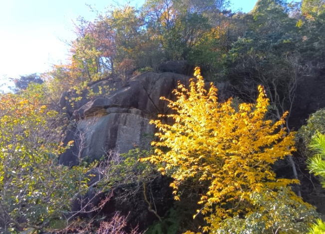 渓流の途中には弁慶岩という巨岩が見られます。大きいことから名付けられたのでしょうか?