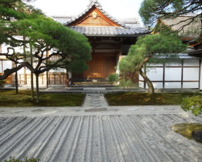 正式名称を東山慈照寺といい、銀閣寺の名の由来は祖父・義光の金閣寺にならって建てられたため銀閣寺と称せられることとなったといわれています。京都を代表する楼閣建築物の一つで、 世界遺産に登録されている。江戸初期に修復された庭園は、美の求道者ともいえる足利義政作と伝えられている