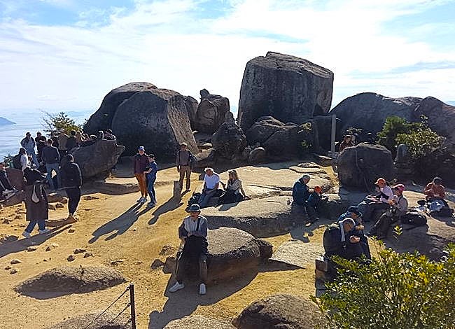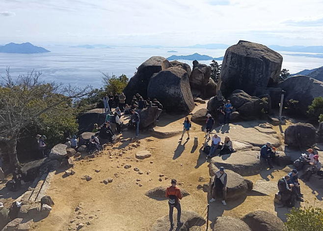 弥山神社から10分ほどで山頂に到着!弥山山頂にはレストハウスが設けられており3階には展望台が整備されています。そこからの眺望は360度のパノラマビューで瀬戸内の多島美と巨岩群のコラボレーションの絶景が広がります