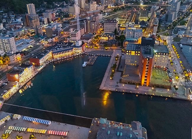 跳ね橋や大連友好記念館、旧大阪商船などの観光スポットも上品な明かりでライトアップされています