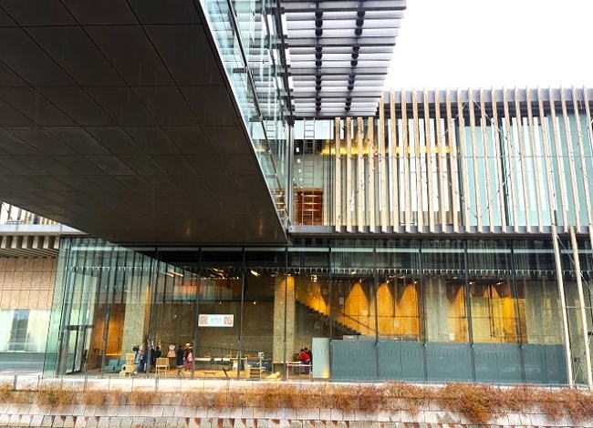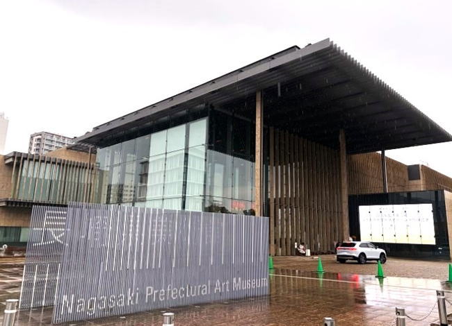 「長崎水辺の森公園」の一角にある自然と調和した 長崎美術館 は、世界的な建築家、隅研吾氏のデザインです