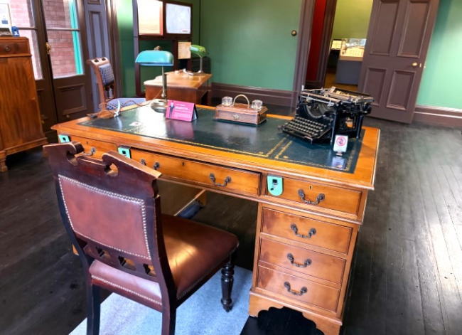 領事事務室は、長崎に赴任してきた英国領事が仕事をしていた場所です。作業机やタイプライターなどの展示で仕事場を再現しています