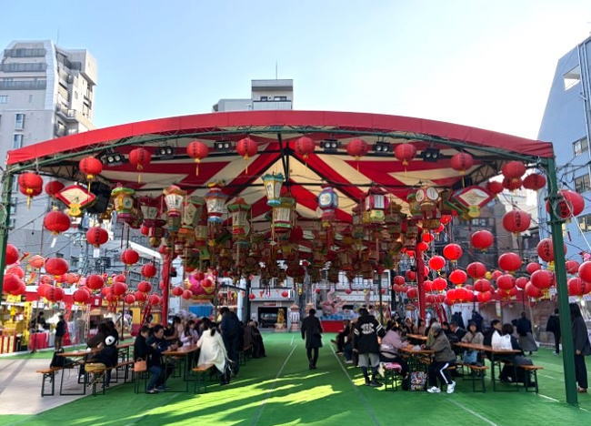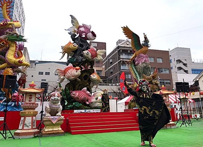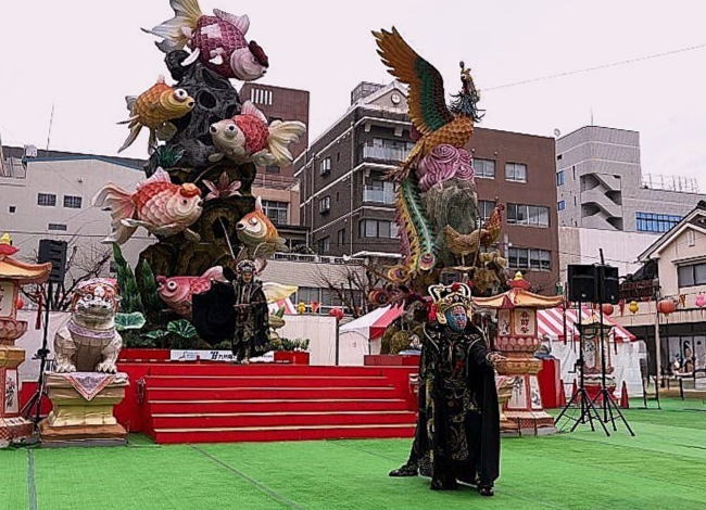 中央公園会場 では変面氏が手や扇子を顔にかざした瞬間、次々とお面が変わる中国変面ショーが行われています。最も有名なのが新地中華街会場ですが同様にランタンやイベントもある中央公園会場は穴場スポットです。又メイン会場となる 湊公園 にはメインオブジェをはじめ、大小様々なランタン装飾に彩られ、龍踊りや二胡演奏など毎日多彩なステージイベントやグルメやランタングッズの屋台が立ち並ぶ華やかな会場です