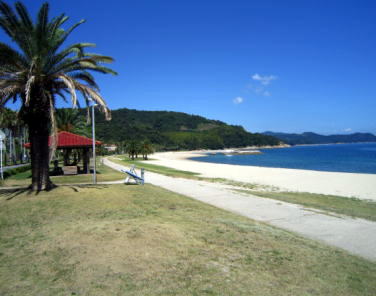 大島の中では一番大きな海水浴場。キャンプ場やコテージもあり夏は大勢の人で賑わいます