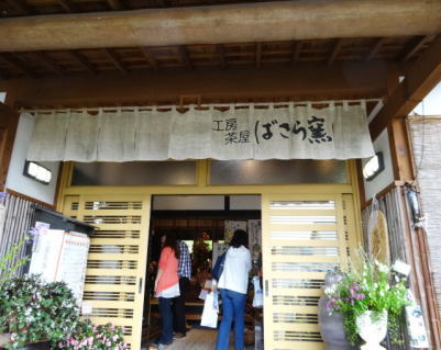 工場内の敷地にある工房・茶房 ばさら窯 茶がゆがいただけます