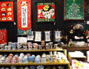 店内は所狭しと民芸品や陶器が並べられていて、萩や備前の土を使った陶芸作家の作品を展示販売しています