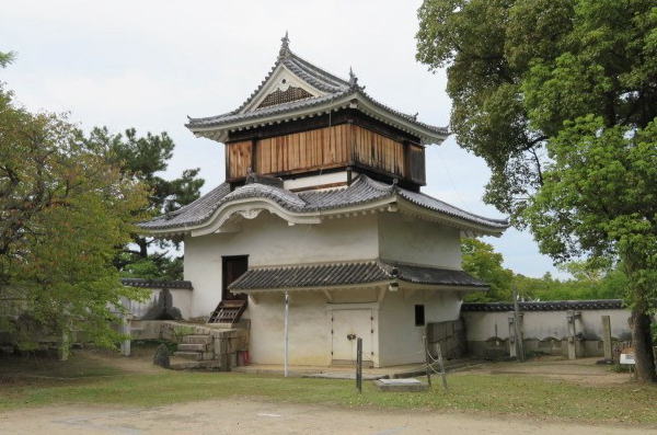 月見櫓 二代目藩主の池田忠雄が岡山城の増改築に際して、本丸搦め手に備えて建てた江戸時代初期の隅櫓です