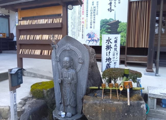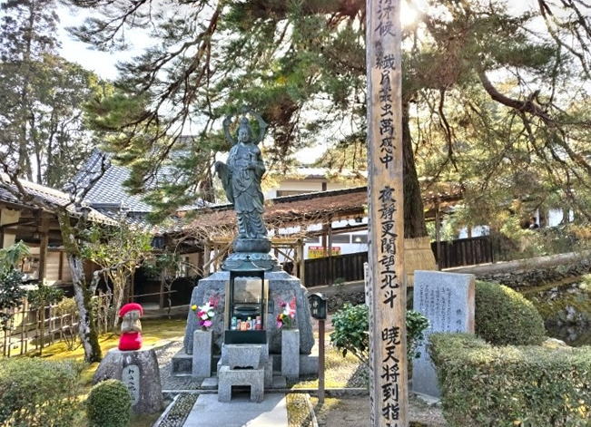 左側には、子供を抱いた慈母観音像があります。観音様は深く念じる人々の声を聞き入れ、様々な姿に変化して苦しみから救ってくださると言われています