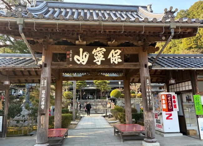 参道を進むと正面に山号「保寧山」と書かれた山門があります。山門の左右には折曲りの回廊があり、方生池をはさんで正面中央に本堂があります