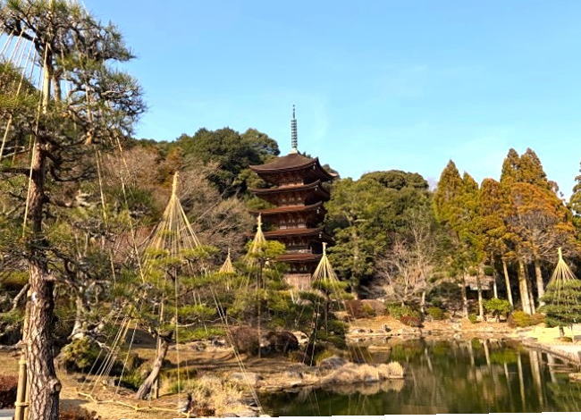 お地蔵さまに杓子で水を掛け一心に念ずれば日願成就されると言われている水掛け地蔵尊。特にガン、ボケ封じで知られています。木々に囲まれた中にそびえたつ五重塔は以前より更に美しくなり、香山公園は自然豊かで木々が生い茂り癒されるところです。梅の木にも蕾がたくさん付き早春にはかわいらしい花が咲くことでしょう!