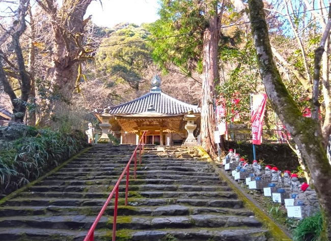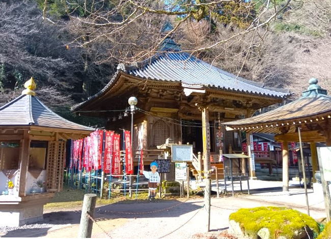 楼門をくぐり石段の先には「大銀杏」の木があり、奥に観音堂があります。参道脇には愛らしい表情の「十二支わらべ地蔵尊」が並んでいます
