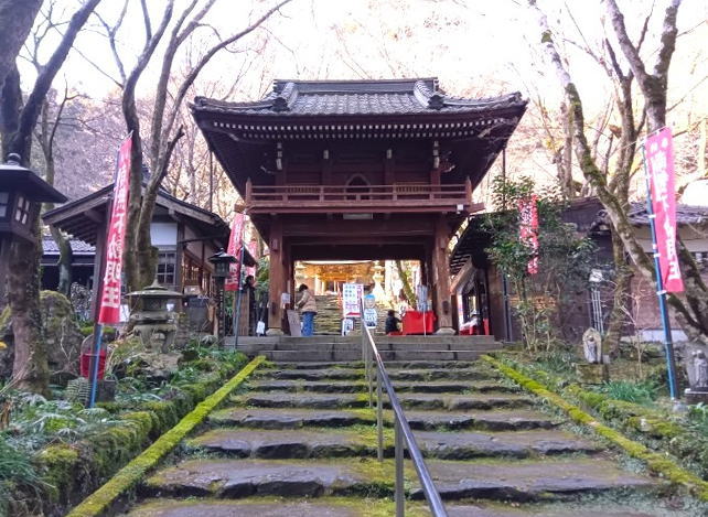 1300年の歴史がある真言宗の寺で、自然に囲まれた静寂な境内には、春に牡丹が咲き、秋には日本一高いイチョウの木が黄色のじゅうたんを敷き詰めます。山口三名瀑の一つである「鼓の滝」も流れています (拝観料: 200円)