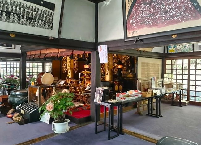 本堂の本尊は阿弥陀如来ですが「観音堂」は真紅の馬頭観音が本尊となっており、天井に「伝雪舟の絵馬」や「伝雲谷等顔の絵馬」などが飾られています