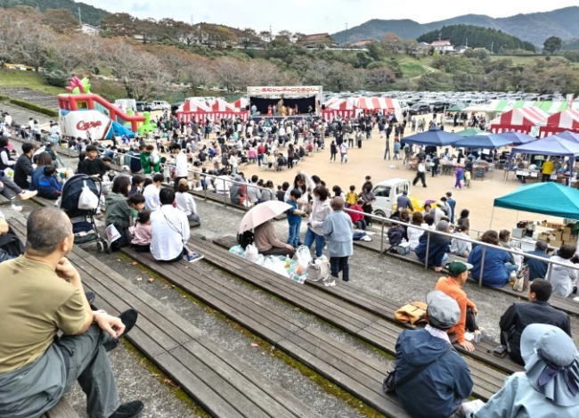クイズを解きながら弥栄湖周辺コースを楽しむ「あるいちゃろう10,000歩ラリー大会」、楽器の演奏や山口県指定無形文化財の「山代白羽神楽」などの公演が交代で行われる「みちゃろう芸能大会」、郷土特産品の展示即売などの「くうちゃろう」などのコーナーには毎年数万人が訪れて賑わうそうです