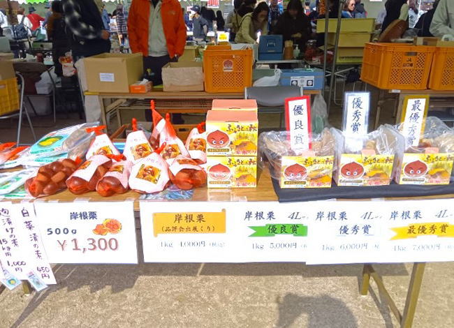 美和町岸根の地名から付けられた特産品「岸根ぐり(がんねぐり)」は粒が大きく甘くてまろやかでしっとりとした味わいが特徴です。栗を使ったスイーツやコロッケも売られていました。焼き栗も美味しいです
