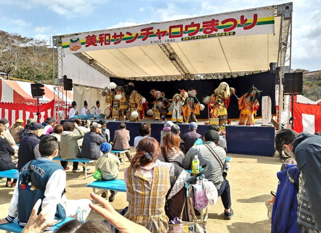 なかでも一番人気は神楽の公演です。「山代白羽神楽」を始め、美和町指定無形文化財「北門神楽」などに加え、小学校児童による「子供神楽」もかわいい舞いを披露します