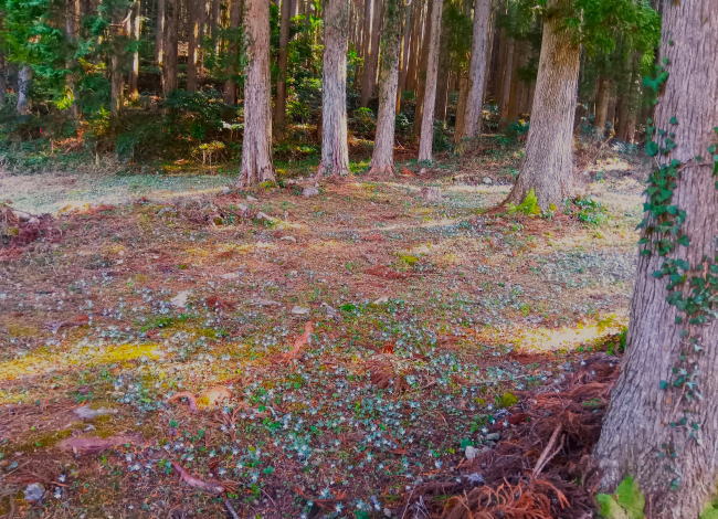 節分草は2月から3月に高さ10cm程で可憐な花をつける多年草の植物で、山口県では平成21年に岩国市錦町古市で自生地が初めて発見されました。栗林の地表を覆いつくすように花を咲かせています