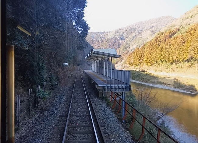 錦川の清流を絶景ポイントから眺望できる清流みはらし駅。この駅には出入り口がなく、道路もつながっておらずイベント列車のみが停車します。錦町駅までの間に「清流の滝」「みはらしの滝」「かじかの滝」と3つの滝があるのですが、雨が少なくほとんど水は流れていませんでした (2026年2月18日)
