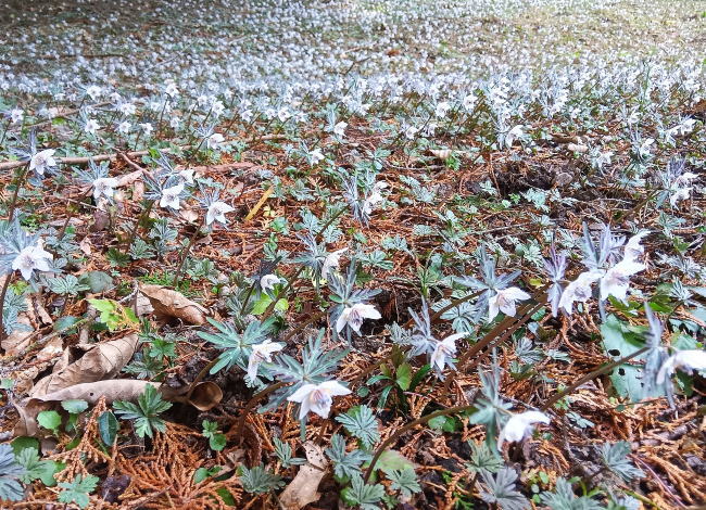 まだ寒さの残る頃に、太陽の光をいっぱいに受けて小さな白い花を付けるセツブンソウを楽しめました