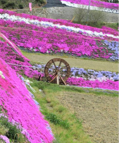 以前訪れた時には棚田に水が張られ「かのじ」の文字が鏡のように水田に写りとても綺麗だったのですが・・・今年の芝桜の咲き具合はあのころに比べると、今一つ盛り上がりに欠けるような気がします