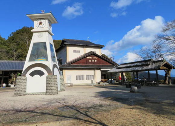 岩国城ロープウエー山頂駅に到着。おもしろパークにはからくり時計があり、時間になると毎年錦帯橋下で行われる鵜飼をテーマにしたカラクリと音楽を楽しめるようです。これより岩国城を目指します