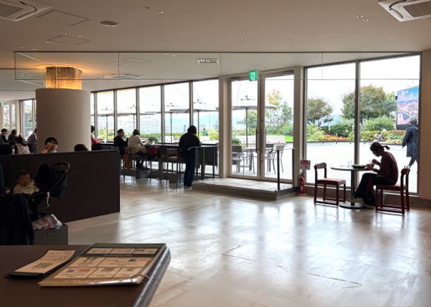 テラス席も用意されています。広島城やエディオンピースウイングのサッカースタジアムなどが一望できます (2025年11月13日)
