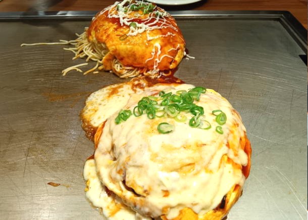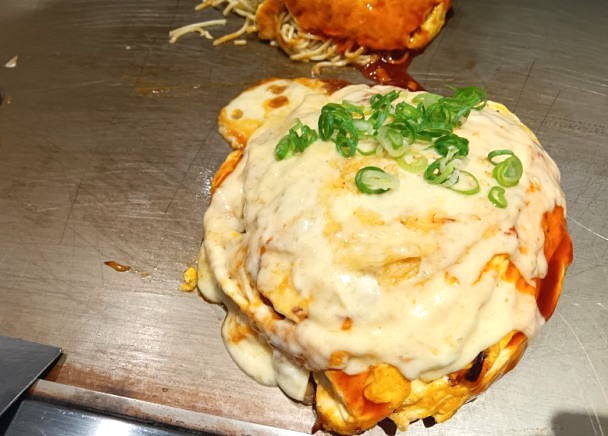 チーズスペシャル(¥1,280) 卵で包まれたお好み焼きの上に濃厚なチーズがたっぷり。ふわふわの焼きたてを鉄板の上で少しずつ焦げていく香ばしさ味わえ、濃厚なのにあっさりとした味わいでとても美味しい
