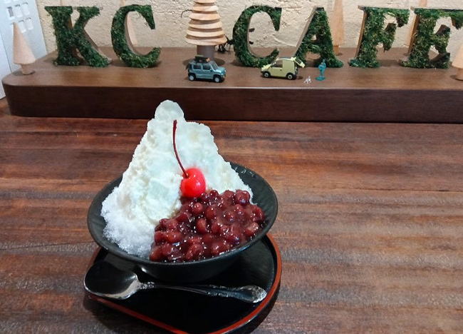 古民家のKC CAFEであずきがたっぷりのミルク金時かき氷(600円)をいただく。優しいミルク味で口どけもさわやかです。入口は狭いのですが、入ってみると奥行きがあり昭和のレトロ感のする居心地の良いカフェです