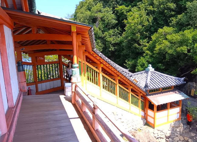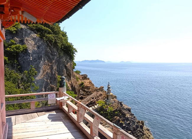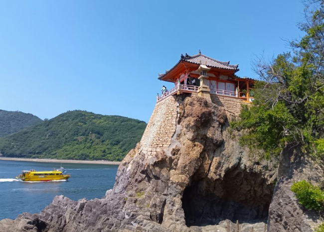 海面から15mの高さにある観音堂は、碧い海と荒々しい岩肌に調和し素晴らしい景観として知られています