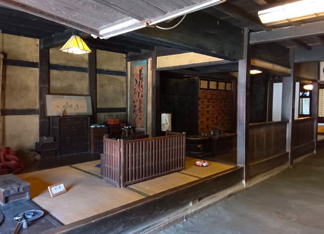 母屋と土蔵からなる商家は、母屋では通り土間に面して店の間、中の間、奥の間が一列に並ぶ典型的な商家の形を見ることが出来ます