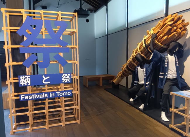 古い木材と新しい木材が混在する館内には、鞆の歴史や建物の特徴、町並みのデザインなどが紹介されています